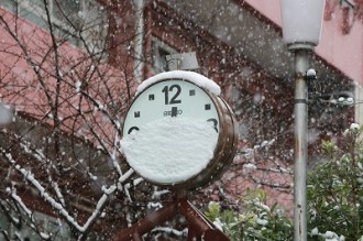 この大雪は、交通機関にも影響があり、雪だるま状態で雪の中を通学する生徒たちの姿が!!