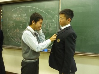 写真は、トップをきって出願する本校中学生の様子です。